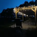 The kitchen amenities feature a fridge, an oven, and kitchenware, provided in an outdoor dining area and a dining place. This accommodation is also a 54-minute drive from Eindhoven airport.